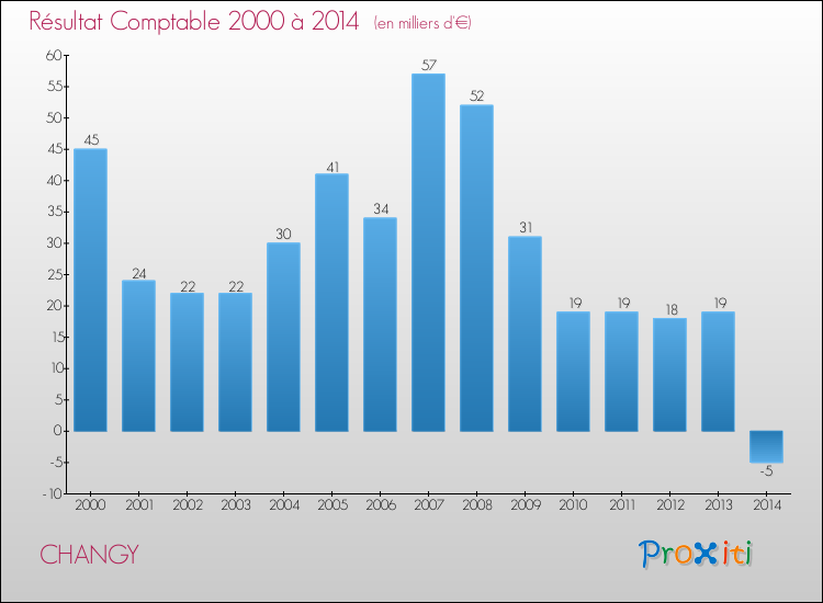 Le résultat comptable de la commune de Changy s'établissait ainsi à : -5 000 € fin 2014 (recettes-dépenses).