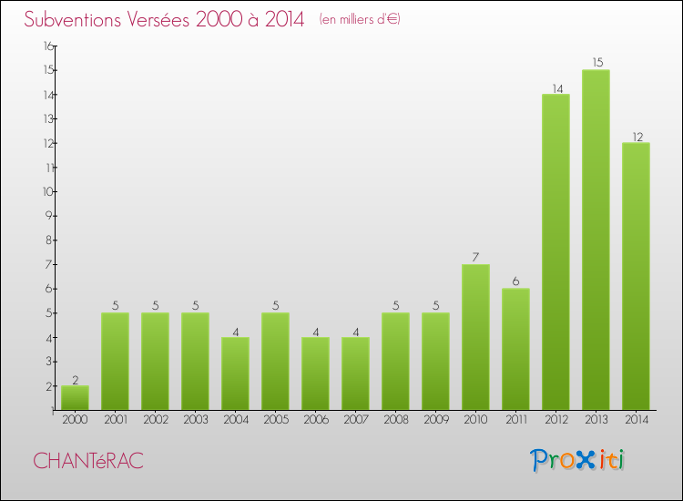 En 2014, à Chantérac, ce budget est en baisse de 12.66 % par rapport à 2013.