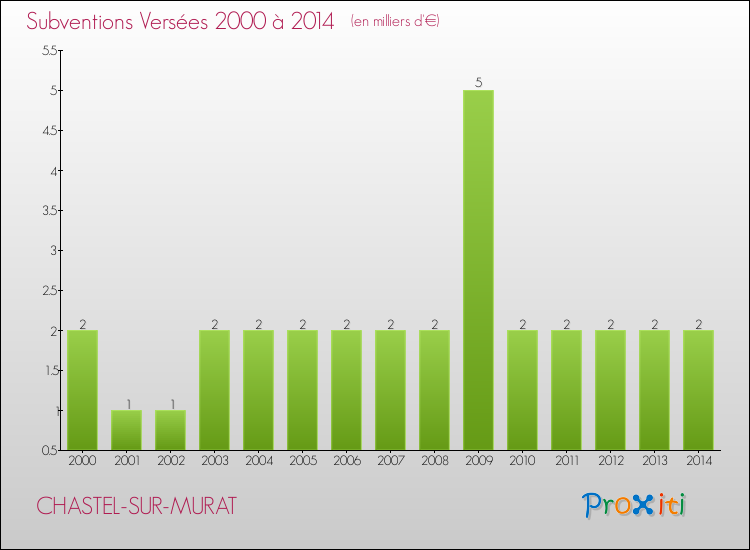 En 2014, à Chastel-sur-Murat, ce budget est en baisse de 7.38 % par rapport à 2013.