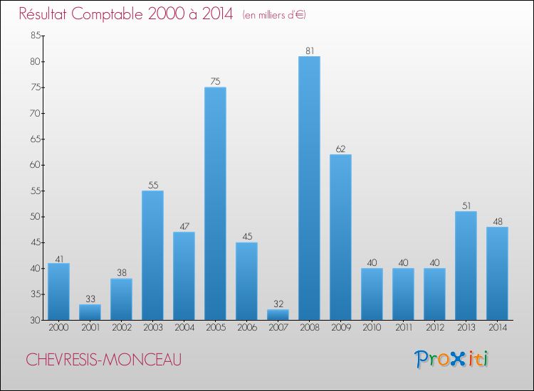 Le résultat comptable de la commune de Chevresis-Monceau s'établissait ainsi à : + 48 000 € fin 2014.