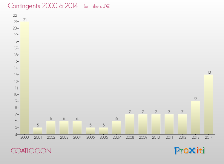 En 2014, à Coëtlogon, ce budget est en baisse de 4.41 % par rapport à 2013.
