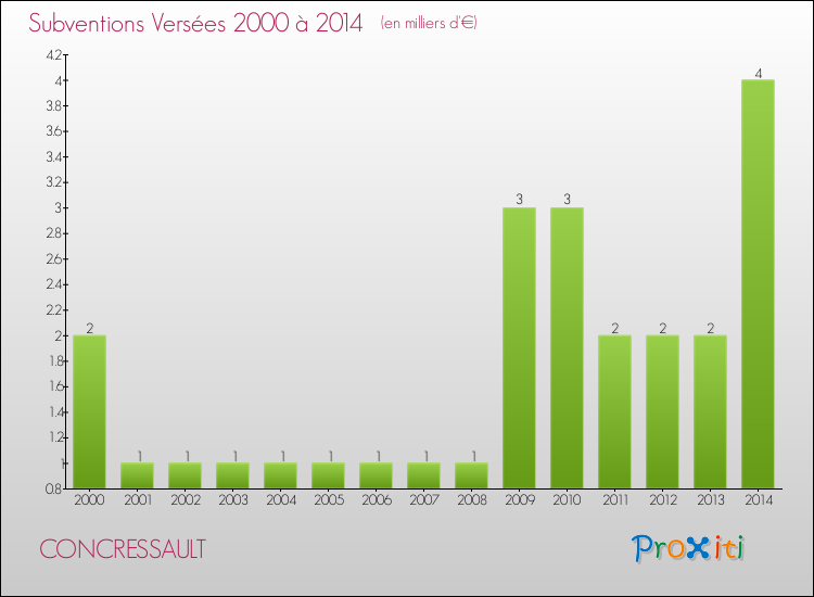 En 2014, à Concressault, ce budget est en baisse de 3.33 % par rapport à 2013.