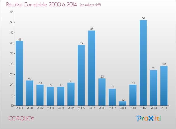 Le résultat comptable de la commune de Corquoy s'établissait ainsi à : + 29 000 € fin 2014.