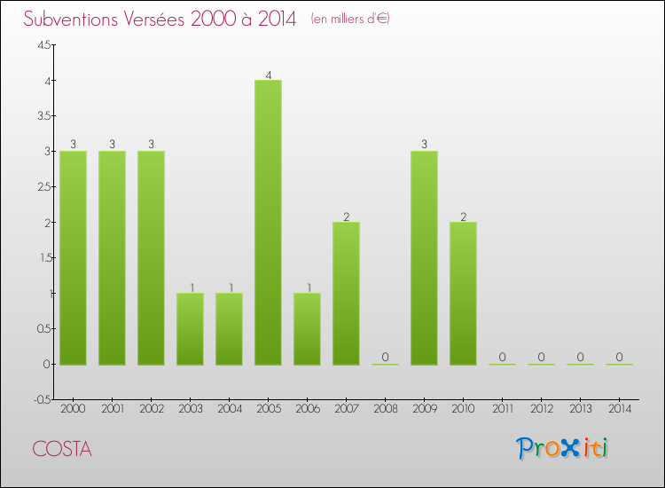 En 2014, le budget de fonctionnement de la commune de Costa se montait à : 86 000 €.