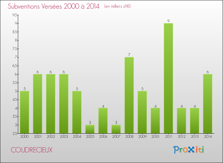 En 2014, à Coudrecieux, ce budget est en augmentation de 3.8 % par rapport à 2013.