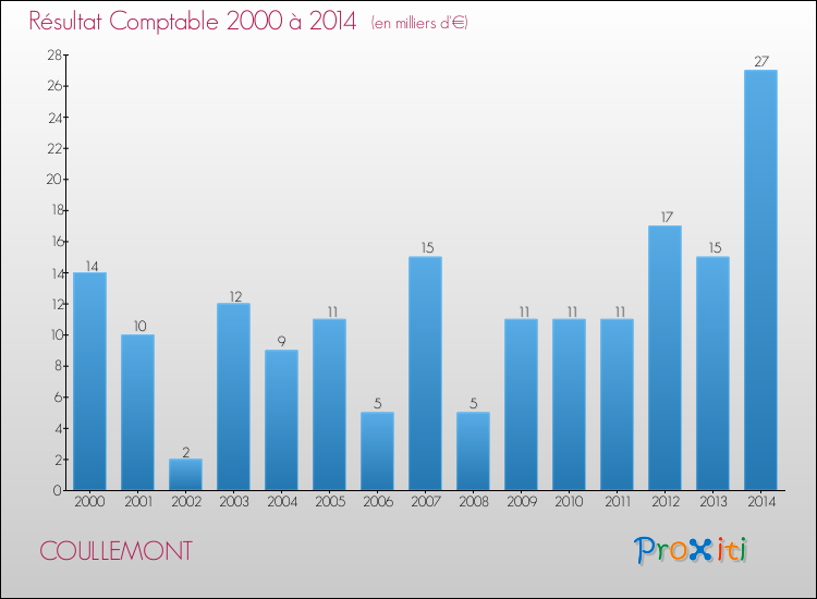 Le résultat comptable de la commune de Coullemont s'établissait ainsi à : + 27 000 € fin 2014.
