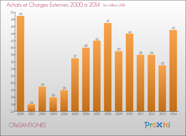 En 2014, à Crésantignes, ce budget est en augmentation de 9.15 % par rapport à 2013.