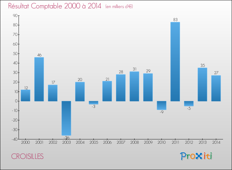 Le résultat comptable de la commune de Croisilles s'établissait ainsi à : + 27 000 € fin 2014.