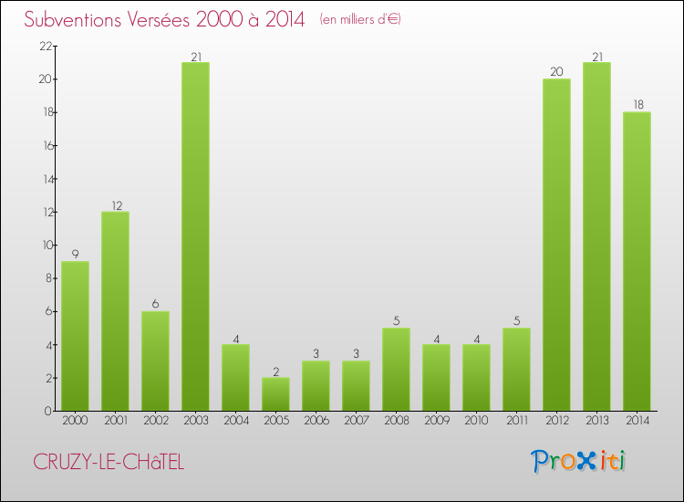En 2014, à Cruzy-le-Châtel, ce budget est en baisse de 11.11 % par rapport à 2013.