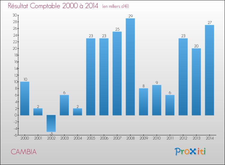 Le résultat comptable de la commune de Cambia s'établissait ainsi à : + 27 000 € fin 2014.