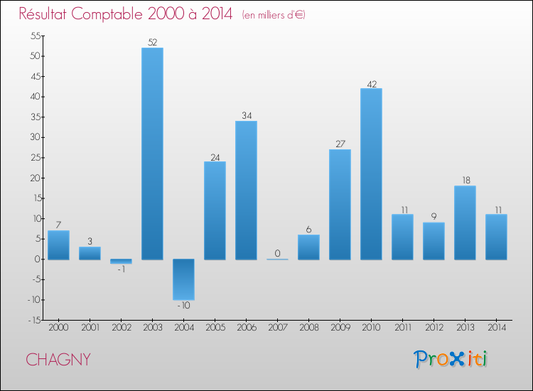 Evolution du résultat comptable pour CHAGNY de 2000 à 2014