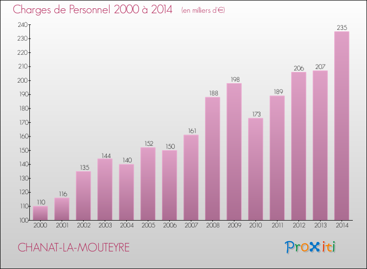 En 2014, à Chanat-la-Mouteyre, ce budget est en baisse de 5.83 % par rapport à 2013.