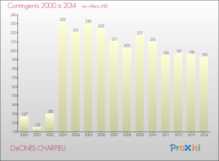 En 2014, à Décines-Charpieu, ce budget est en baisse de 1.99 % par rapport à 2013.