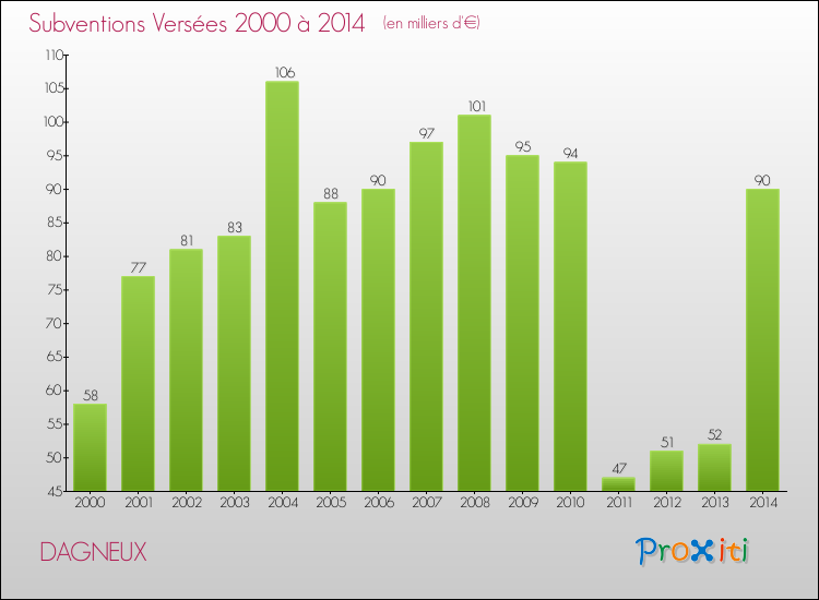 En 2014, à Dagneux, ce budget est en baisse de 33.86 % par rapport à 2013.