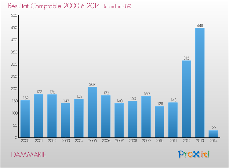 Le résultat comptable de la commune de Dammarie s'établissait ainsi à : + 29 000 € fin 2014.