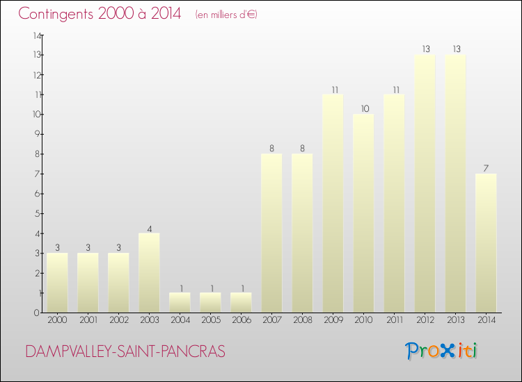 En 2014, à Dampvalley-Saint-Pancras, ce budget est en augmentation de 6.98 % par rapport à 2013.