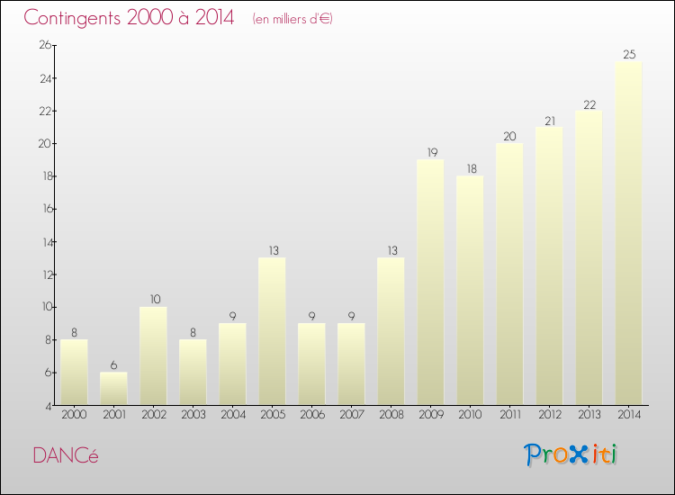 En 2014, à Dancé, ce budget est en baisse de 1.26 % par rapport à 2013.