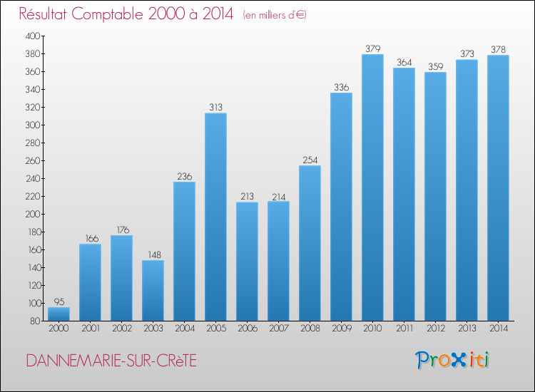 Le résultat comptable de la commune de Dannemarie-sur-Crète s'établissait ainsi à : + 378 000 € fin 2014.