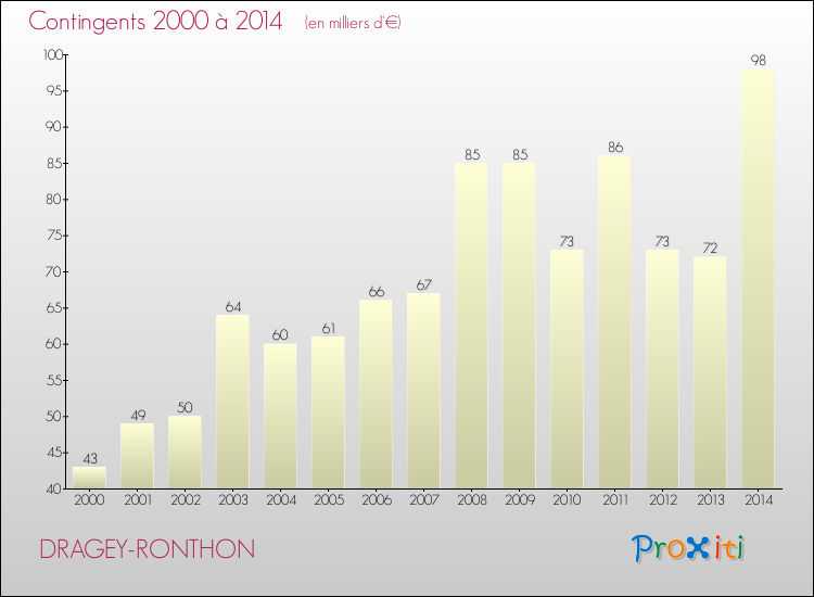 En 2014, à Dragey-Ronthon, ce budget est en augmentation de 22.77 % par rapport à 2013.