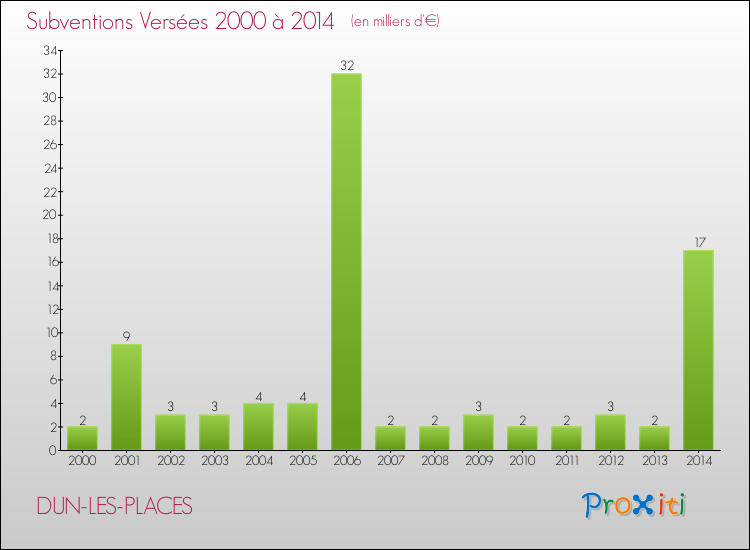 En 2014, à Dun-les-Places, ce budget est en baisse de 20.75 % par rapport à 2013.