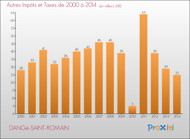 En 2014, à Dangé-Saint-Romain, ce budget est en baisse de 2.78 % par rapport à 2013.