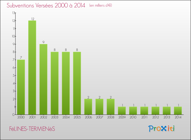 En 2014, à Félines-Termenès, ce budget est en baisse de 10.65 % par rapport à 2013.