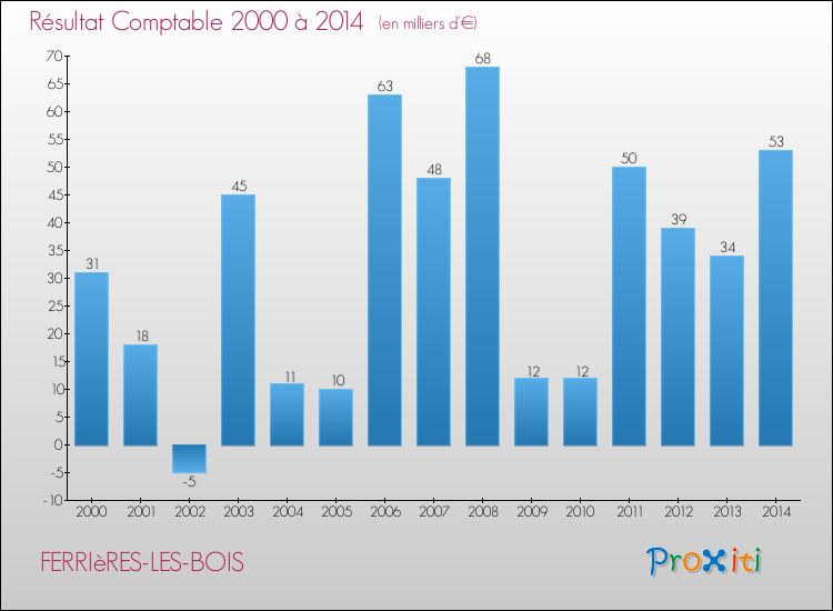 Le résultat comptable de la commune de Ferrières-les-Bois s'établissait ainsi à : + 53 000 € fin 2014.