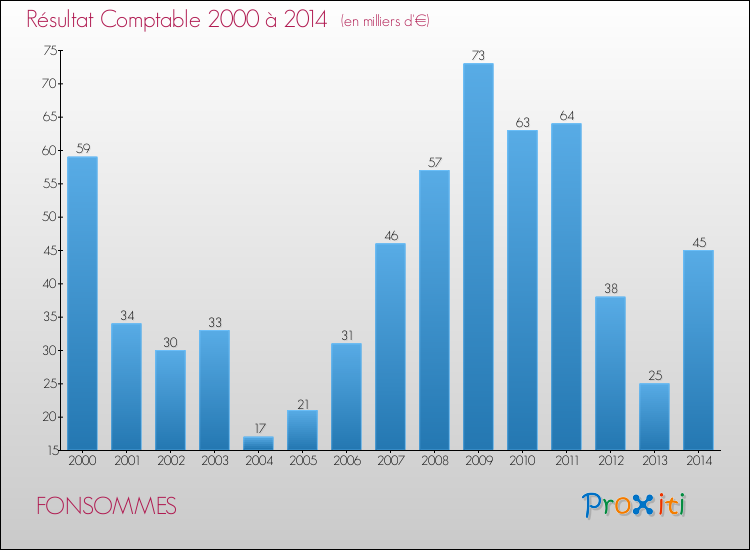 Le résultat comptable de la commune de Fonsommes s'établissait ainsi à : + 45 000 € fin 2014.