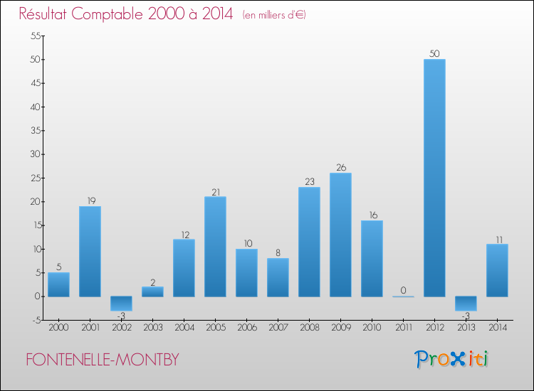 Le résultat comptable de la commune de Fontenelle-Montby s'établissait ainsi à : + 11 000 € fin 2014.