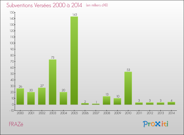 En 2014, à Frazé, ce budget est en baisse de 11.4 % par rapport à 2013.