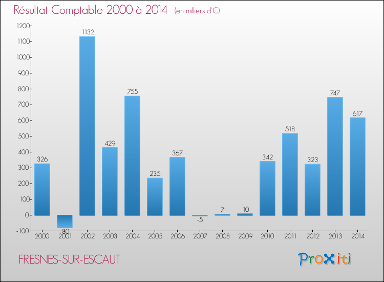Le résultat comptable de la commune de Fresnes-sur-Escaut s'établissait ainsi à : + 617 000 € fin 2014.