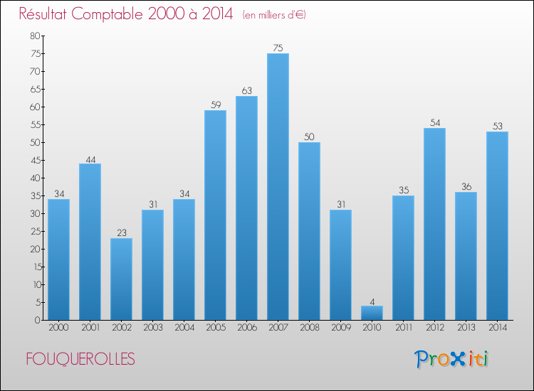 Le résultat comptable de la commune de Fouquerolles s'établissait ainsi à : + 53 000 € fin 2014.