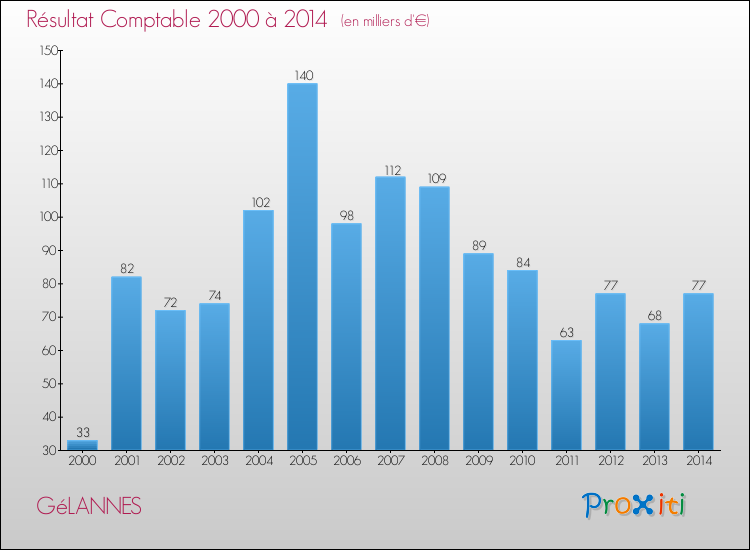 Le résultat comptable de la commune de Gélannes s'établissait ainsi à : + 77 000 € fin 2014.