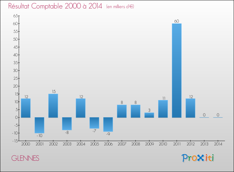 Le résultat comptable de la commune de Glennes s'établissait ainsi à : + 0 € fin 2014.