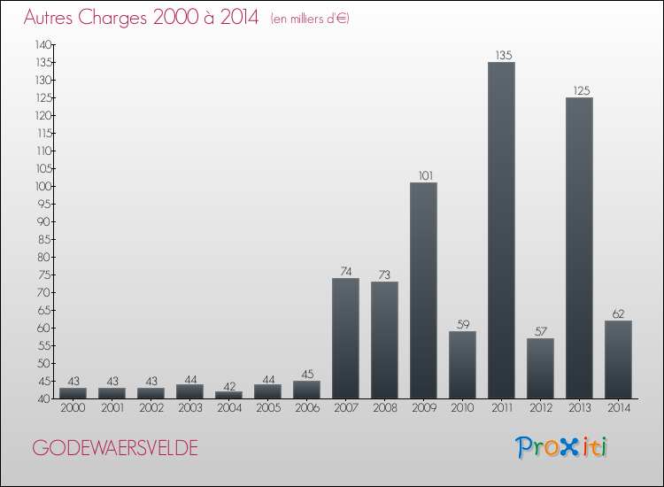 En 2014, à Godewaersvelde, ce budget est en baisse de 8.13 % par rapport à 2013.