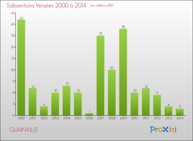En 2014, à Guainville, ce budget est en baisse de 4.89 % par rapport à 2013.