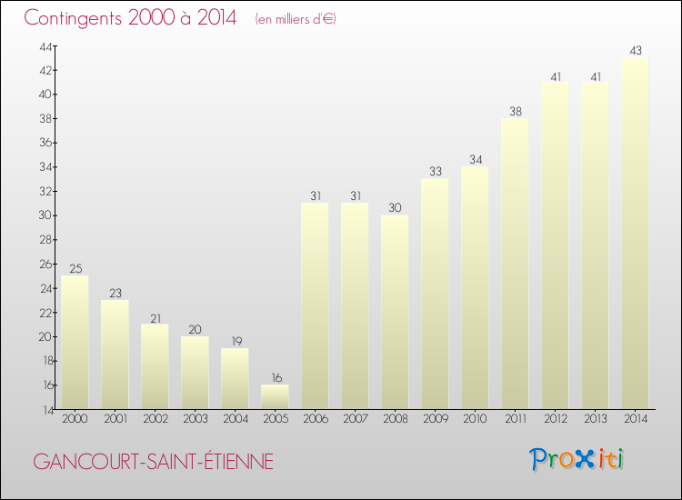 En 2014, à Gancourt-Saint-Étienne, ce budget est en baisse de 5.33 % par rapport à 2013.