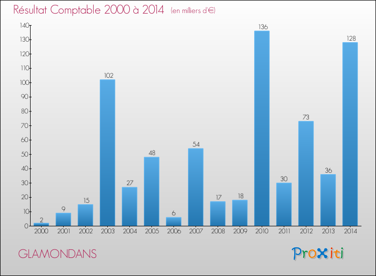 Le résultat comptable de la commune de Glamondans s'établissait ainsi à : + 128 000 € fin 2014.