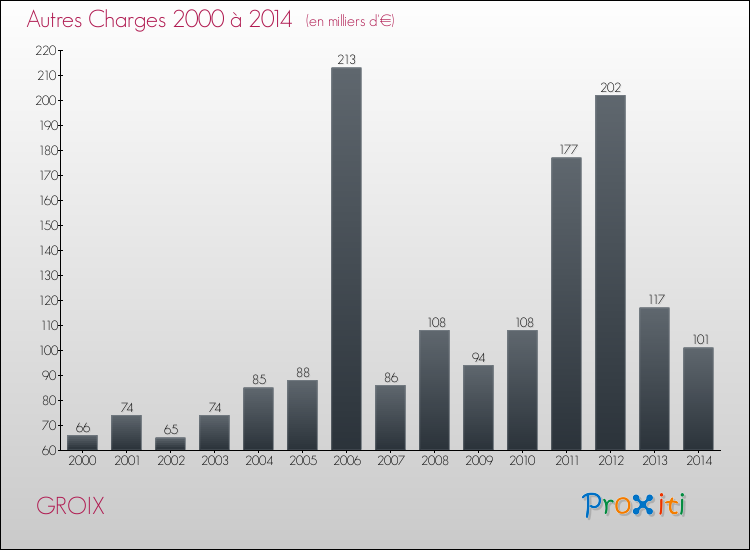 Ces charges se décomposent comme suit (Cliquez sur les signes + et - pour voir ou masquer les évolutions entre 2000 et 2014) :