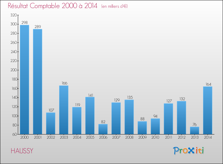 Le résultat comptable de la commune de Haussy s'établissait ainsi à : + 164 000 € fin 2014.