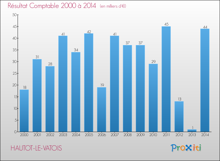 Le résultat comptable de la commune de Hautot-le-Vatois s'établissait ainsi à : + 44 000 € fin 2014.