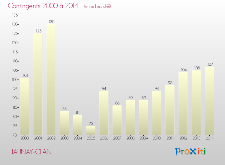 En 2014, à Jaunay-Clan, ce budget est en baisse de 10.87 % par rapport à 2013.