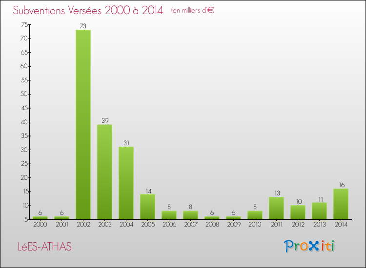 En 2014, à Lées-Athas, ce budget est en baisse de 20.25 % par rapport à 2013.