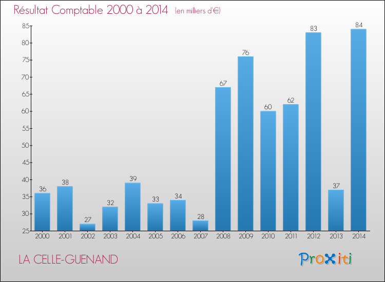 Evolution du résultat comptable pour LA CELLE-GUENAND de 2000 à 2014