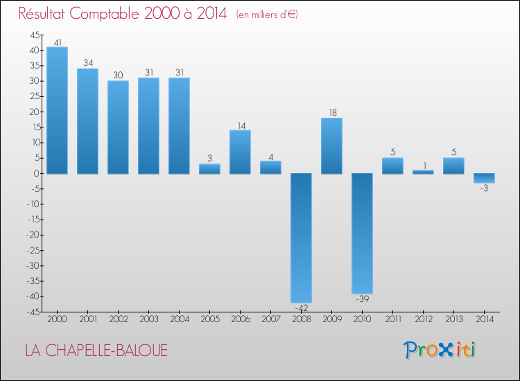 Le résultat comptable de la commune de La Chapelle-Baloue s'établissait ainsi à : -3 000 € fin 2014 (recettes-dépenses).
