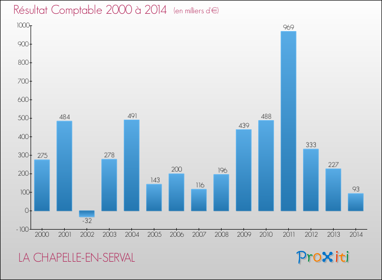 Le résultat comptable de la commune de La Chapelle-en-Serval s'établissait ainsi à : + 93 000 € fin 2014.
