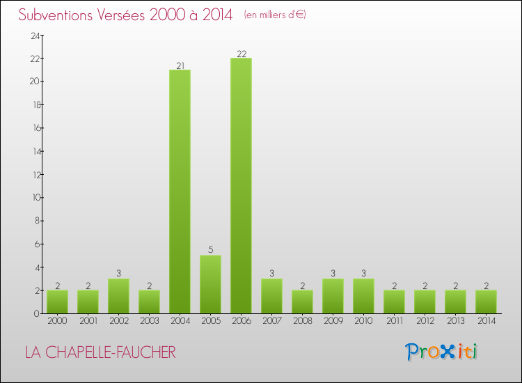 En 2014, à La Chapelle-Faucher, ce budget est en baisse de 17.96 % par rapport à 2013.