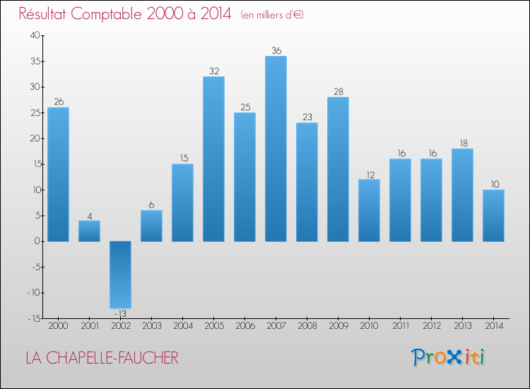 Le résultat comptable de la commune de La Chapelle-Faucher s'établissait ainsi à : + 10 000 € fin 2014.