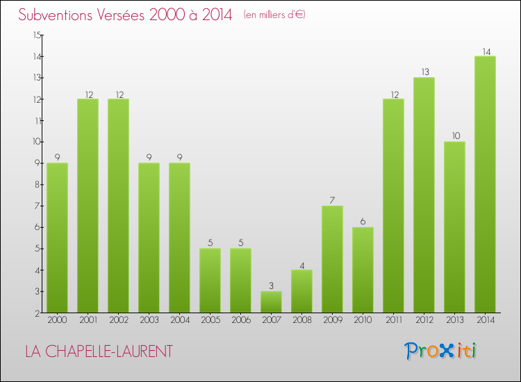 En 2014, à La Chapelle-Laurent, ce budget est en baisse de 8.7 % par rapport à 2013.
