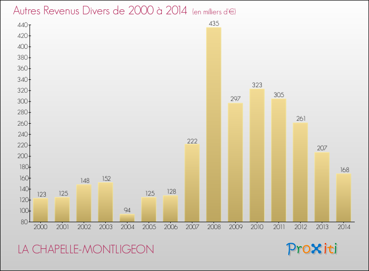 En 2014, à La Chapelle-Montligeon, ce budget est en baisse de 3.19 % par rapport à 2013.